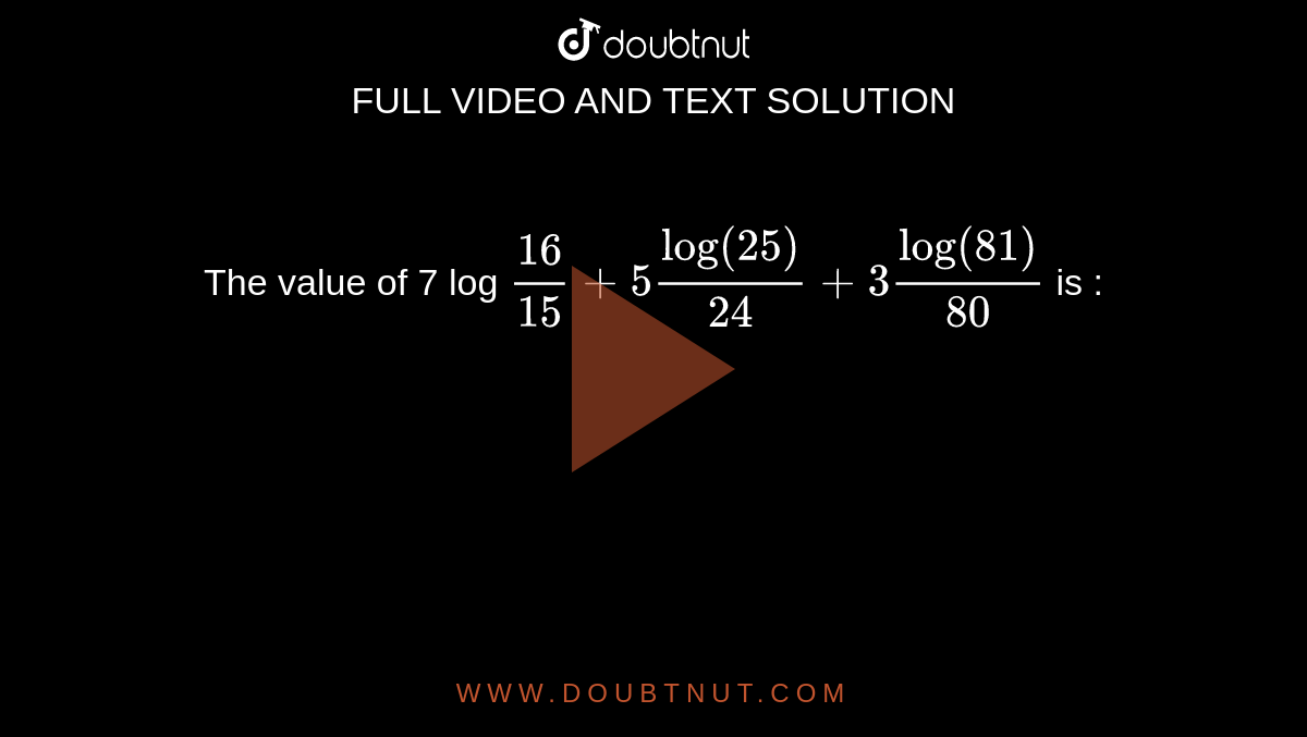 The Value Of 3 Log 81 80 5 Log 25 24 7 Log 16 15 Is